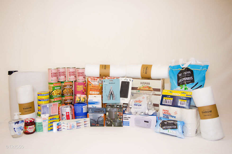 Komplett overlevelsespakke for hjemmet eller hytta. Perfekt ved strømbrudd, naturkatastrofer eller andre nødsituasjoner.